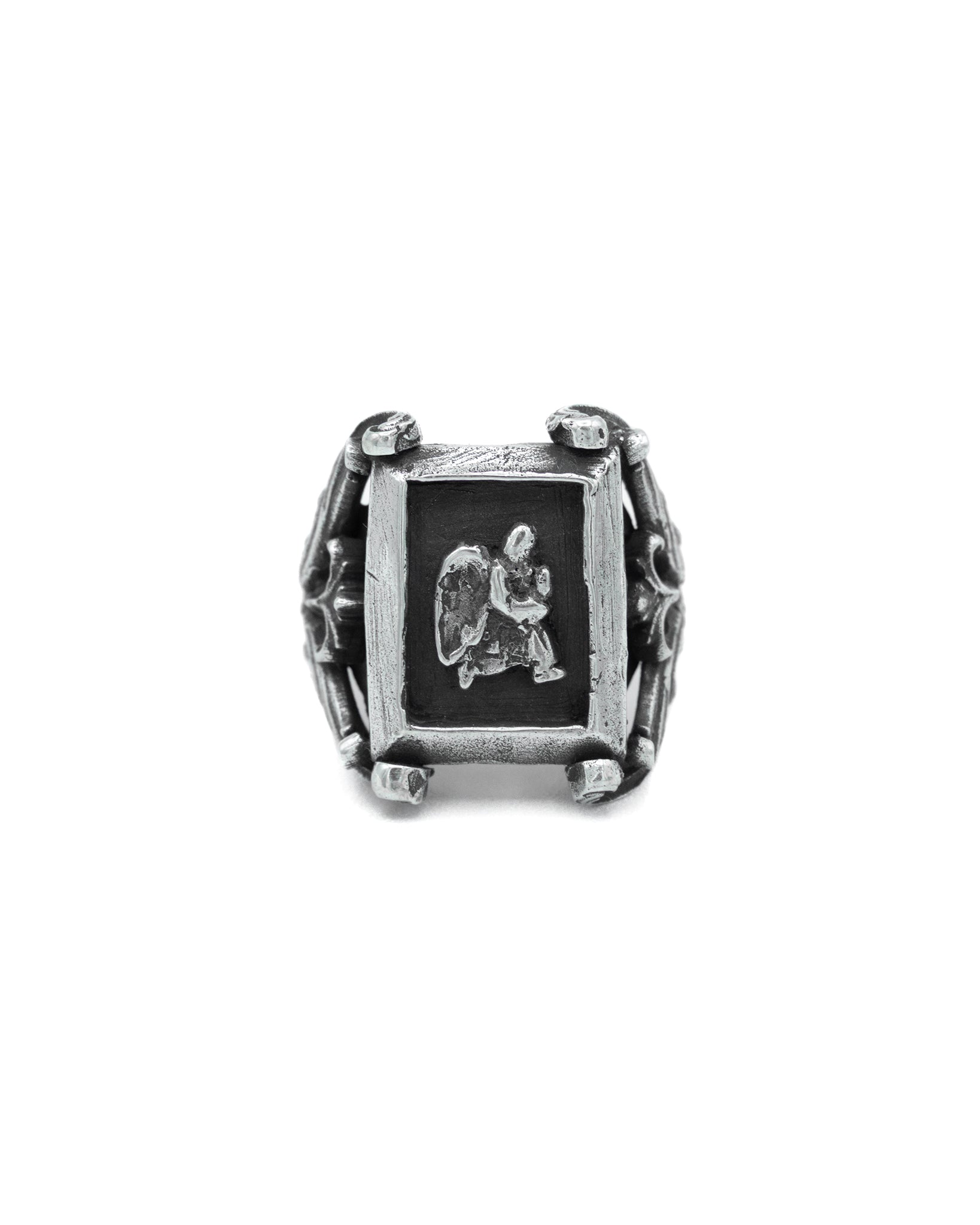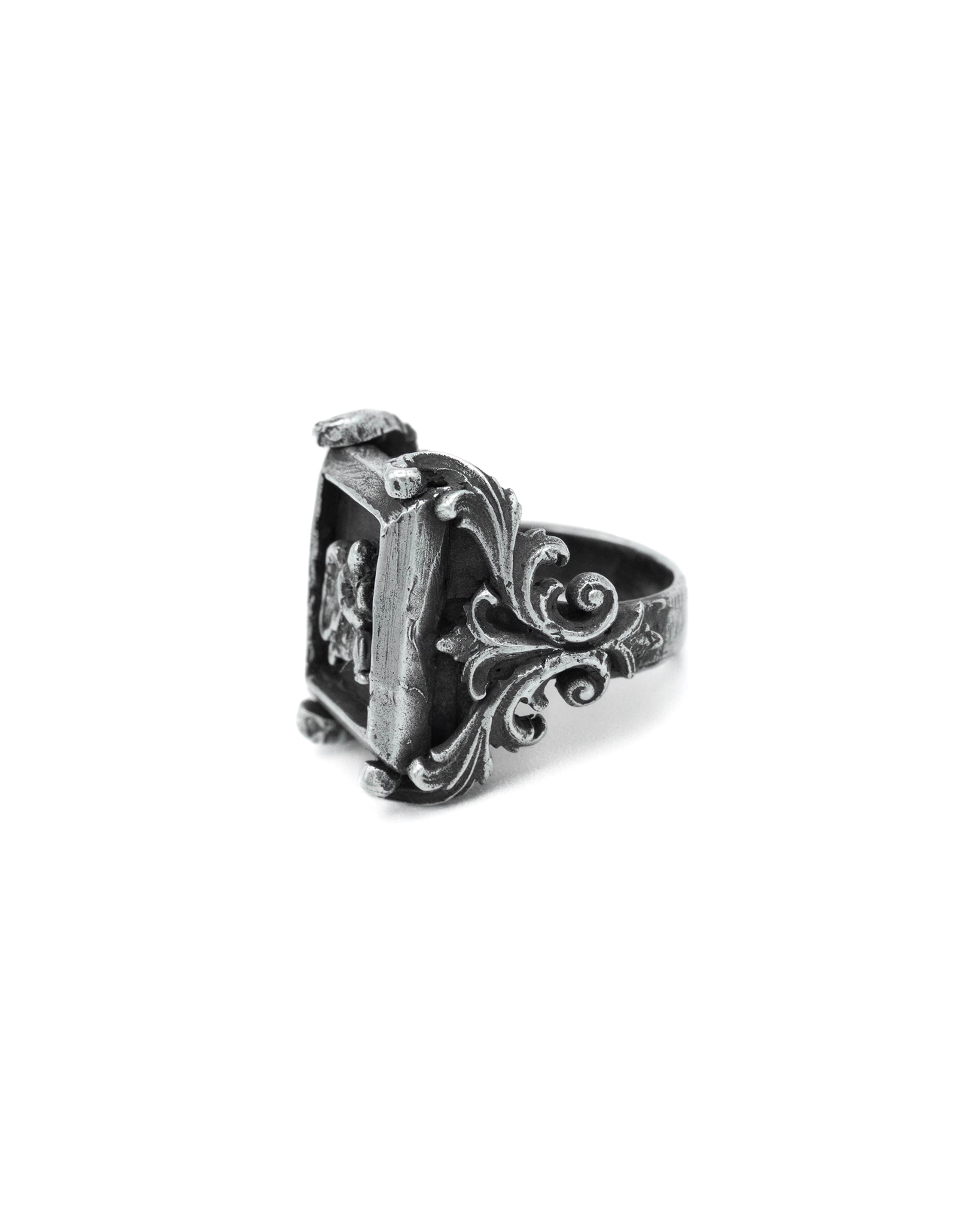 Filigree-Detail Prayer Square Signet Ring