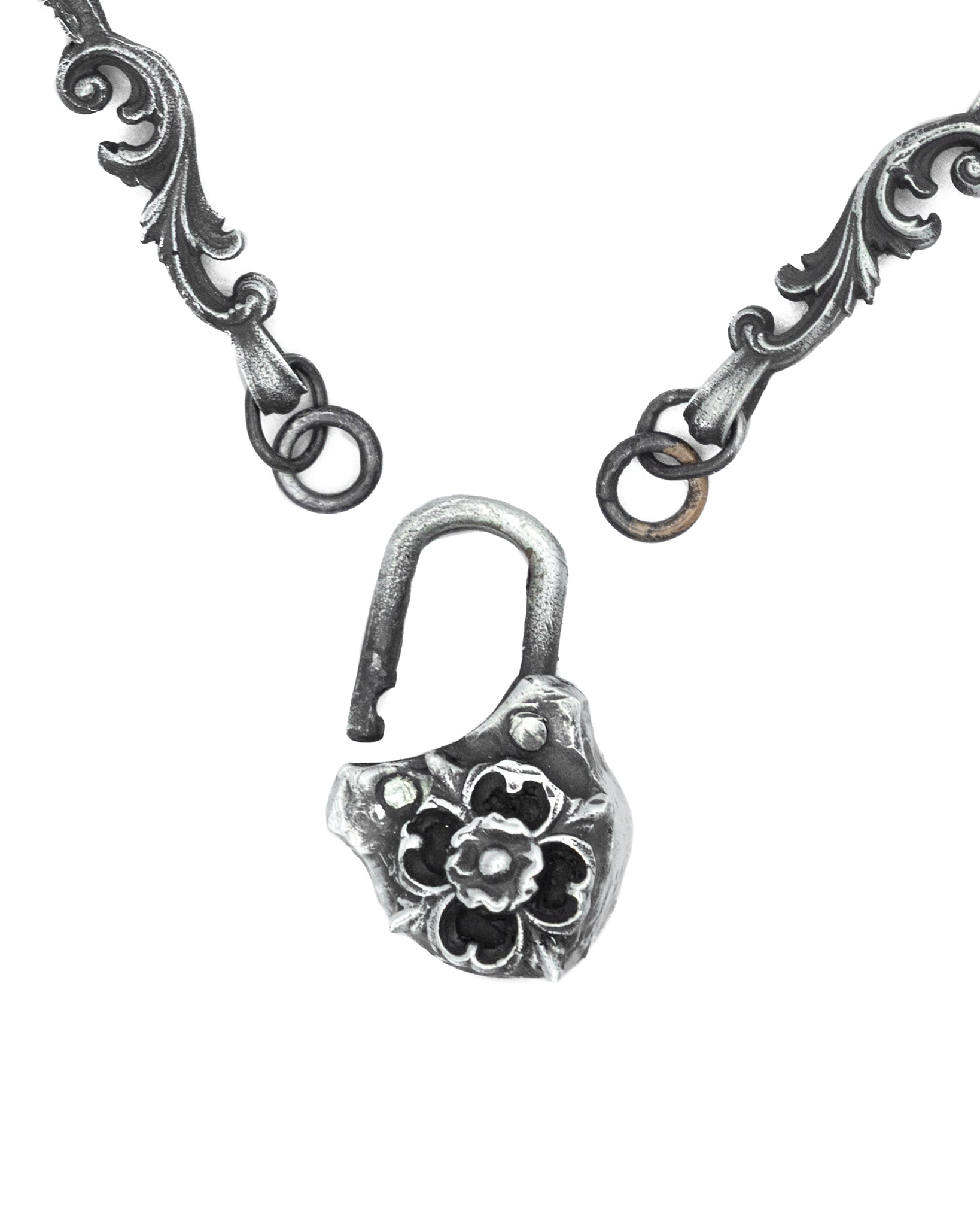 Filigree Link Necklace with Blossoming Flower Logo Locket